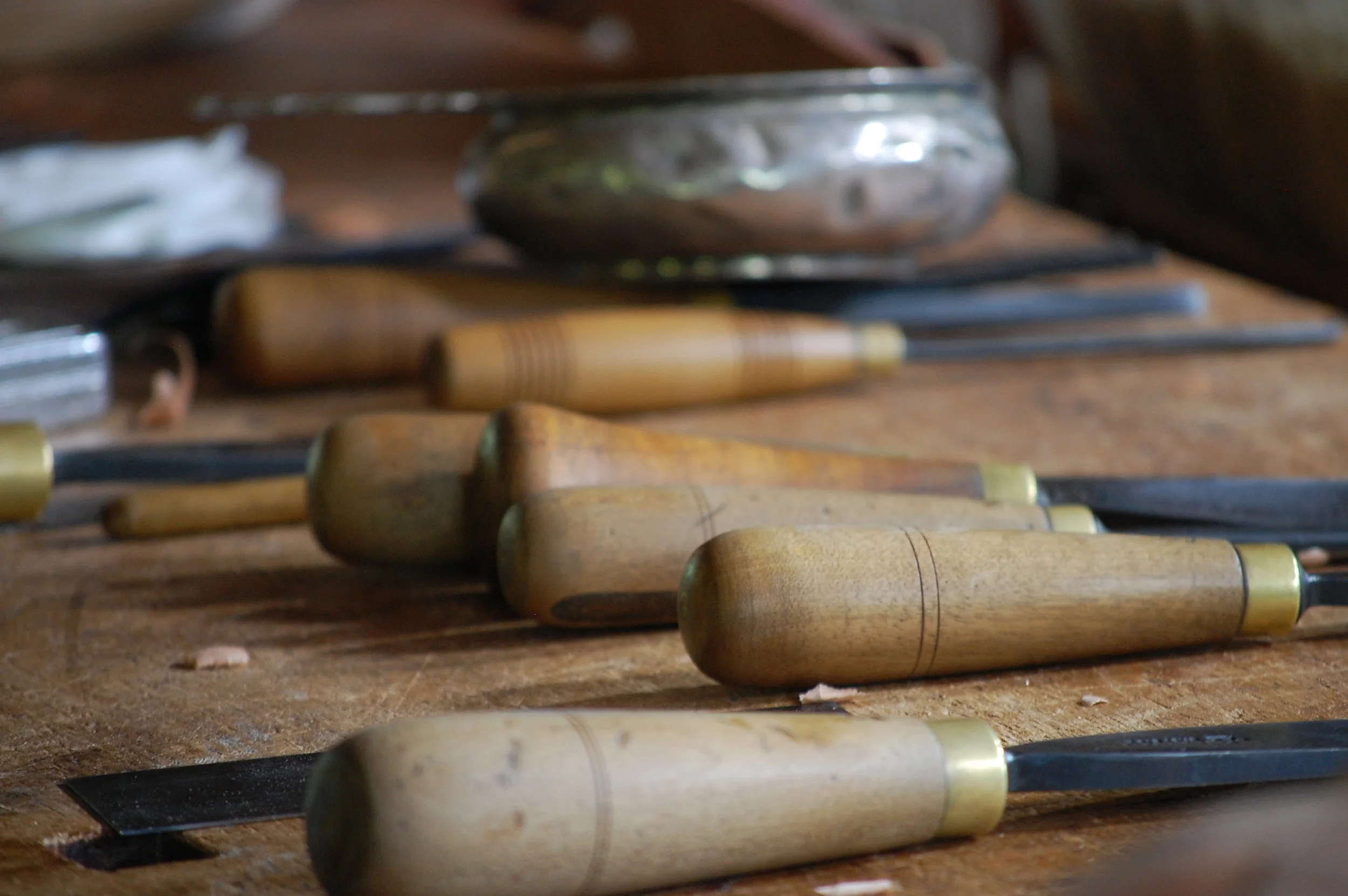 John's tools waited a century or more to find their way into his hands. The set of chisels he uses are heavily collected artworks in their own right, and are fit for a museum. John believes that these tools have souls - they were created for a purpose and will remain unfulfilled if they are sitting in a collector's display. Using them to create incredible wooden art pieces opens the door for timeless results. Carving with these tools restores the relationship between artist and these chisels - as it was upon their creation.